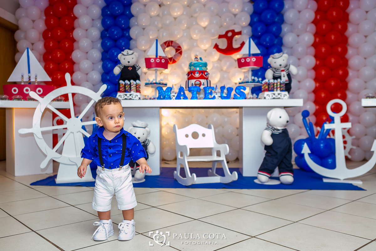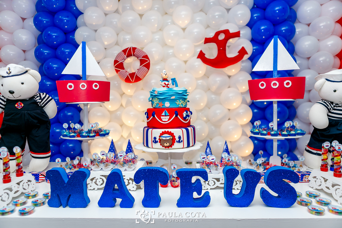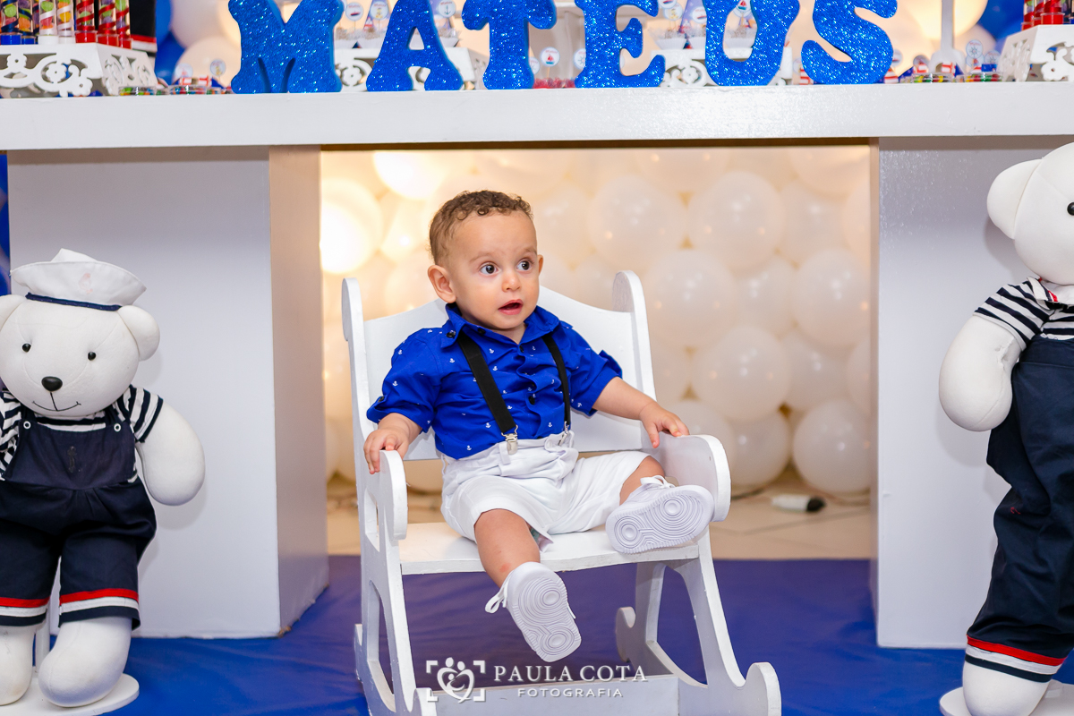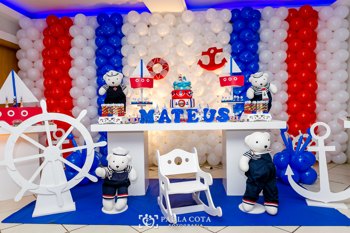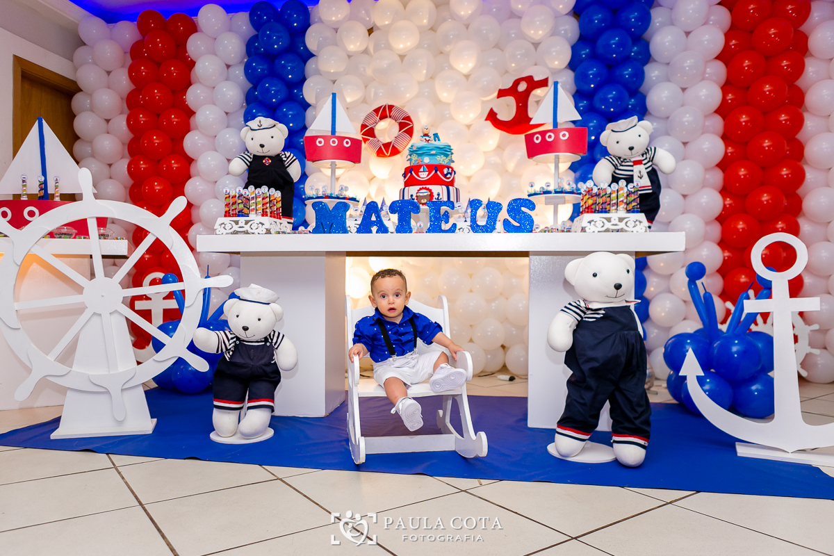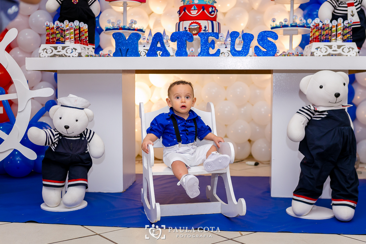 Matheus comemorou seu primeiro aninho de ursinho marinheiro ao lado de sua família e amigos.