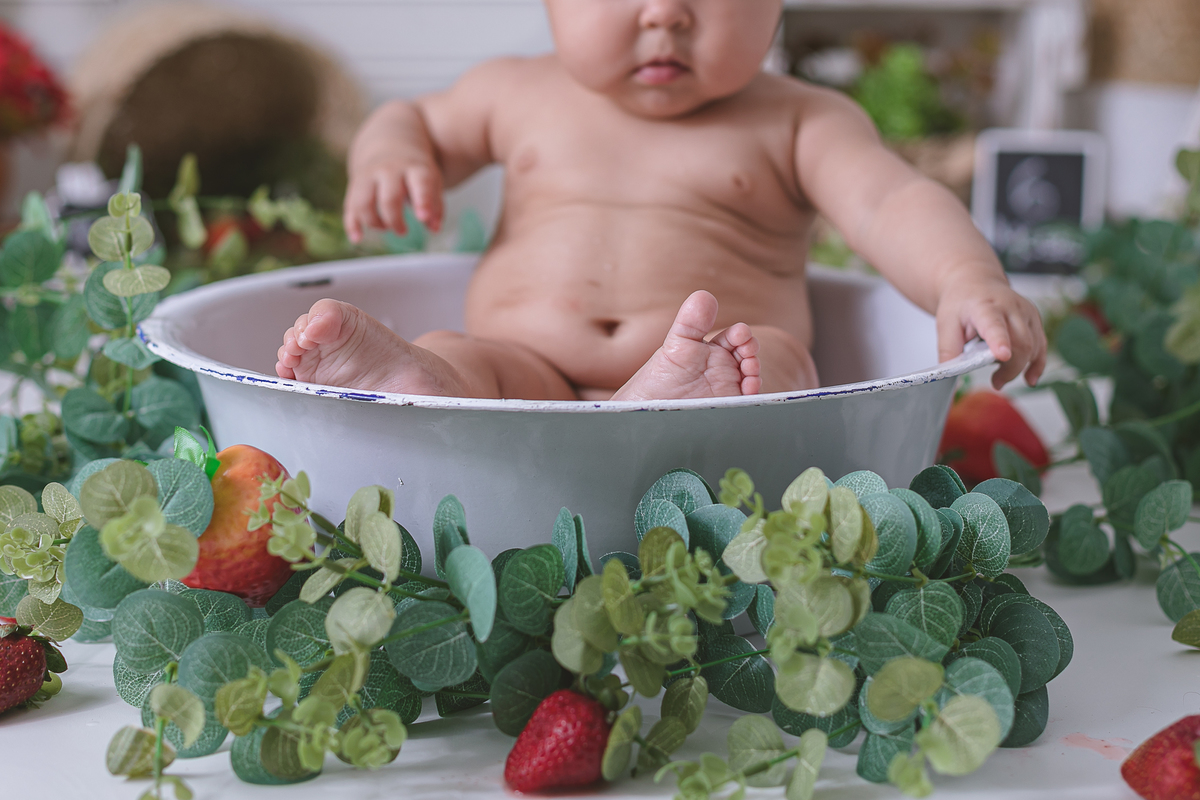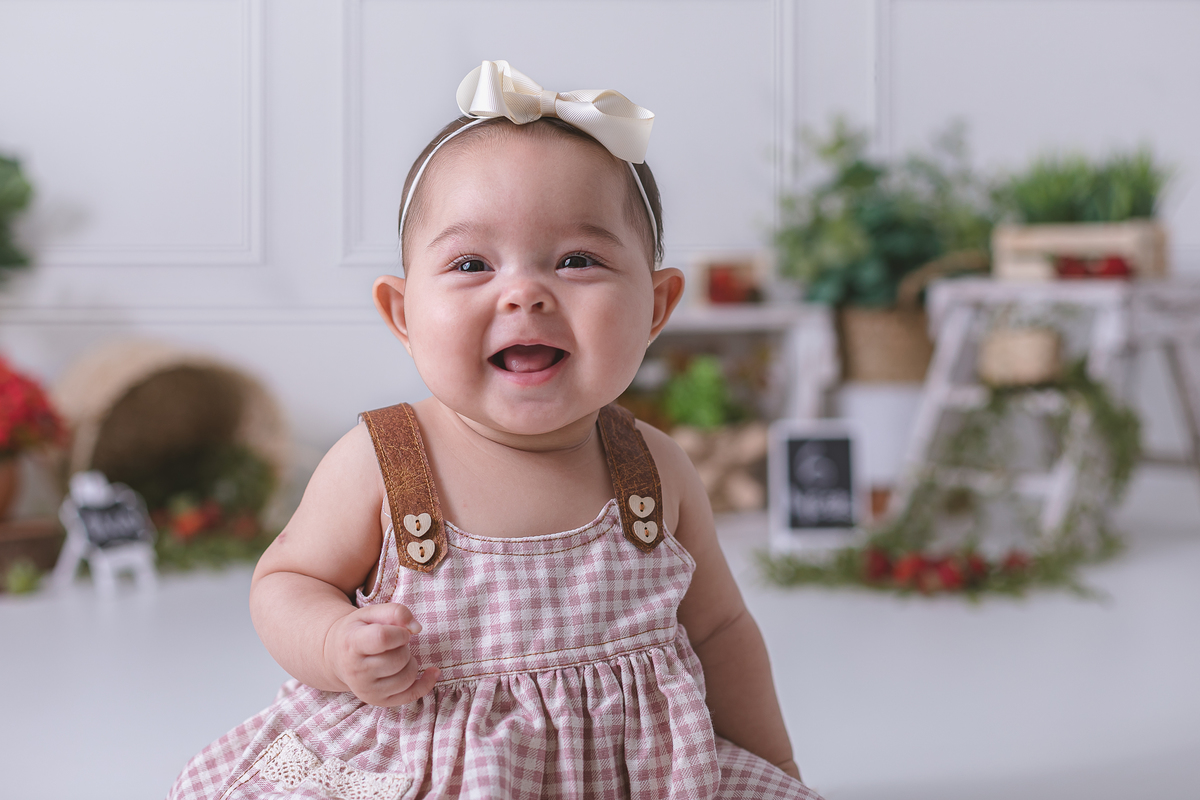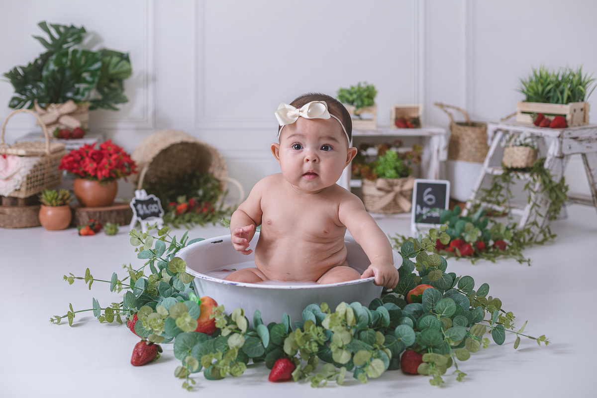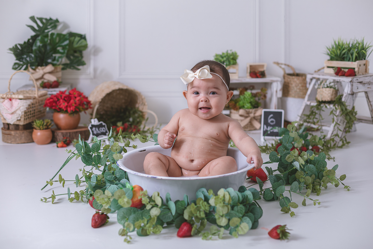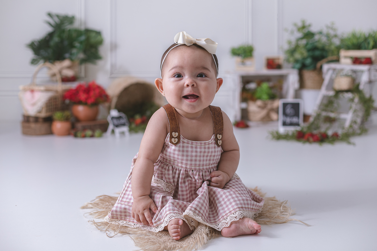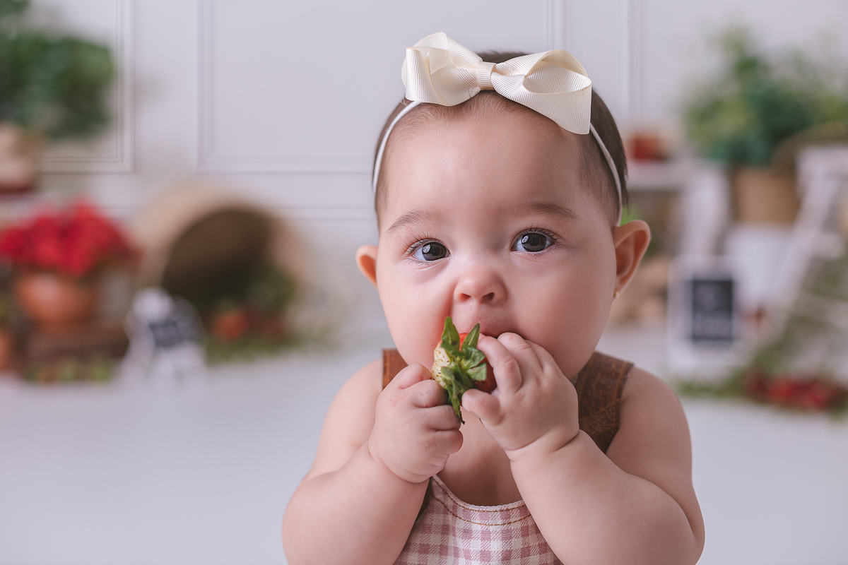 Celebrando a introdução alimentar da pequena Mariana fizemos esse lindo e doce ensaio de moranguinho.